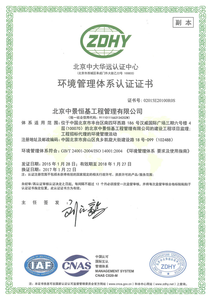 環境管理體系認證證書